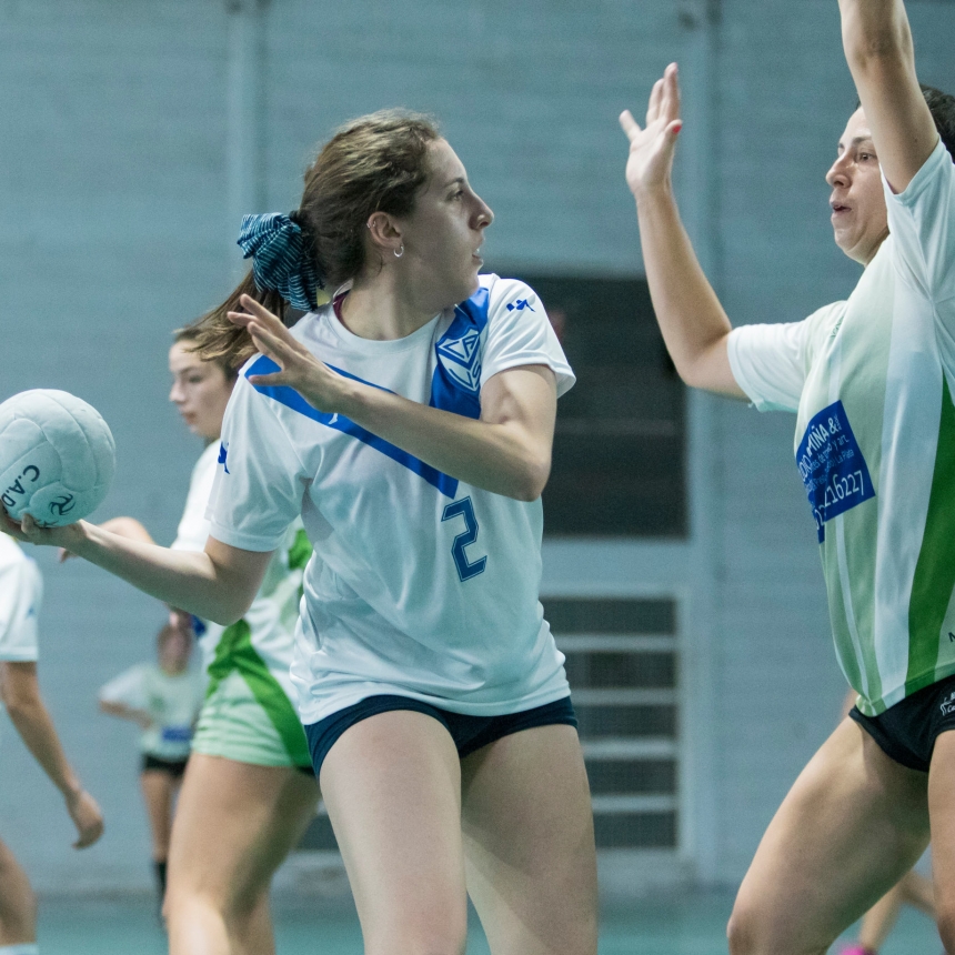 Gimnasio cubierto de 30 x 30 m (bajo autopista). 1 cancha oficial con piso sintético y otra de entrenamiento. Iluminación Led. Actividad: Cestoball. Escuela formativa desde 7 años. Deporte de conjunto exclusivamente femenino.